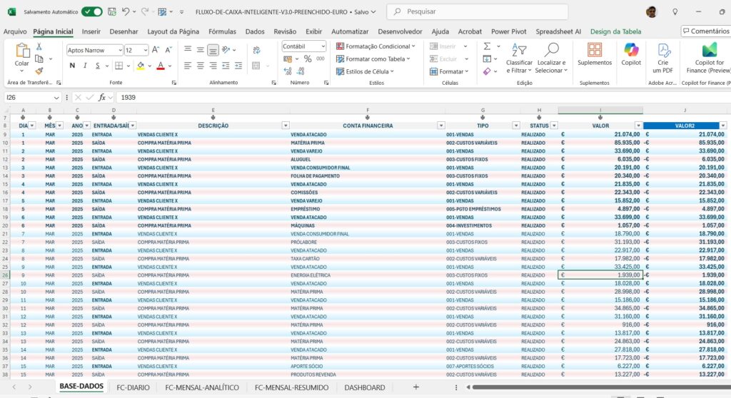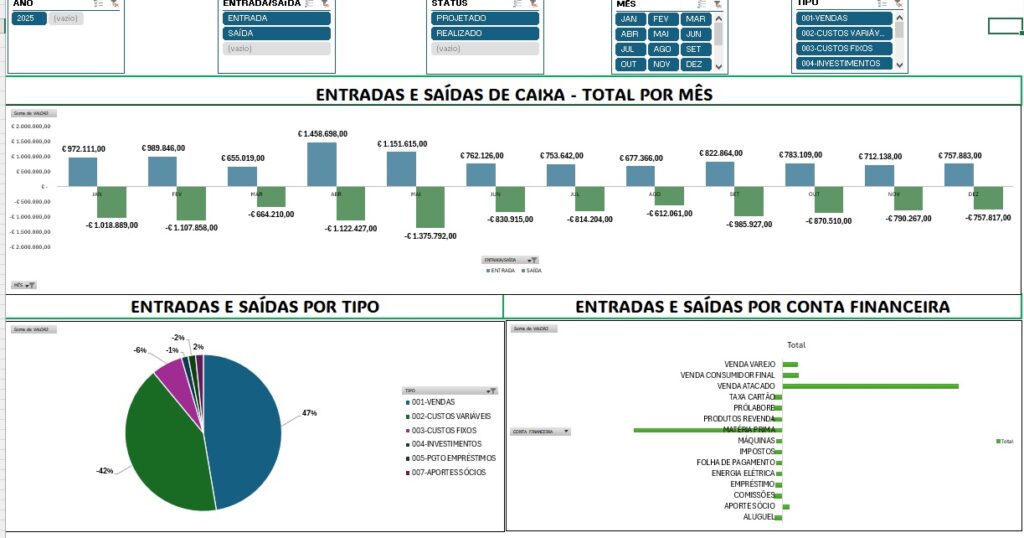5) DASHBOARD GRÁFICO E INTERATIVO do FLUXO DE CAIXA DA SUA EMPRESA;