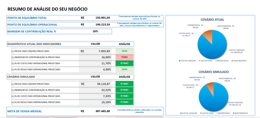 3) Se o seu negócio está com indicadores financeiros bons – DIAGNÓSTICO FINANCEIRO AUTOMÁTICO